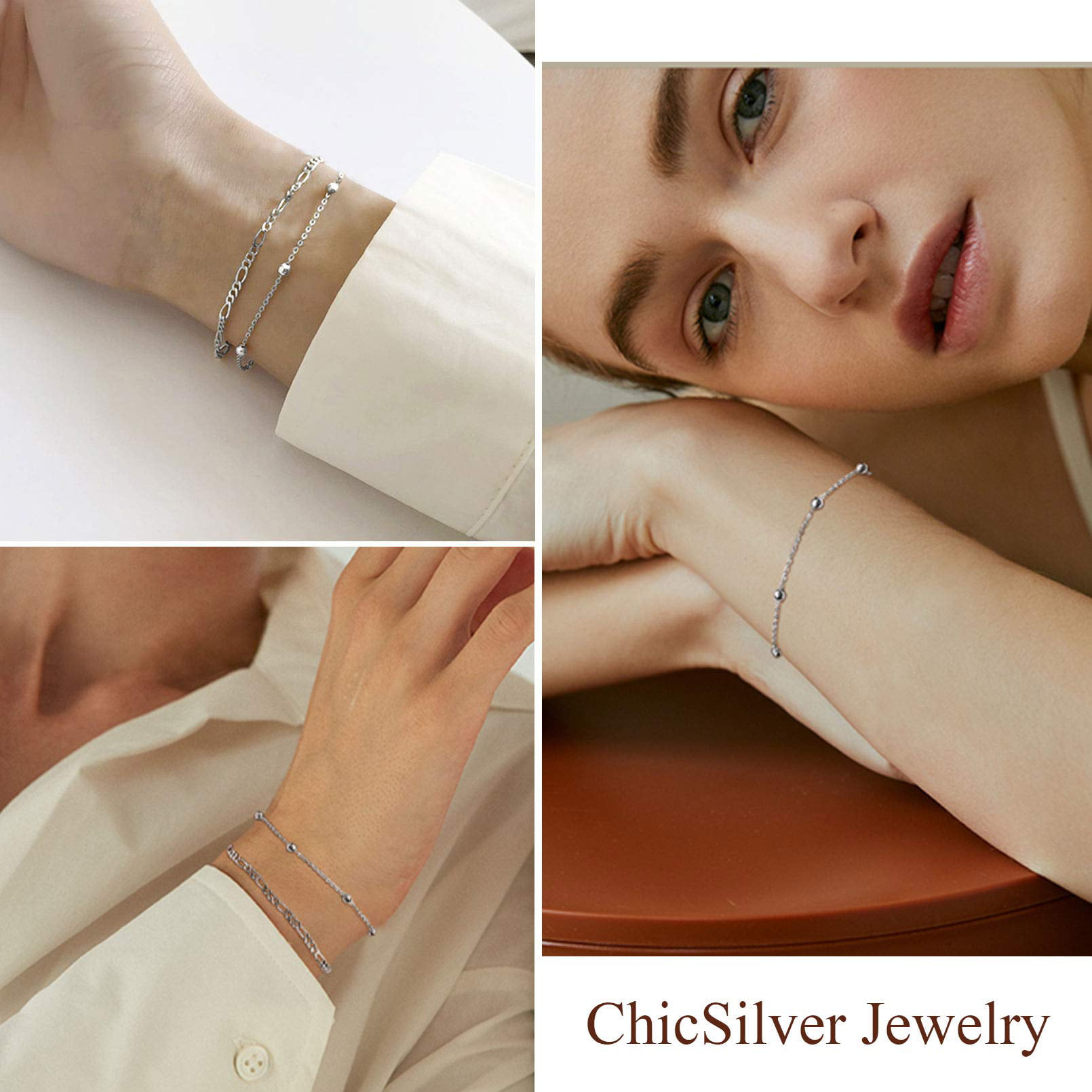 ChicSilver 925 Sterling Silver Bead Chain Bracelet for Women Teen Girls Dainty Jewelry Gifts