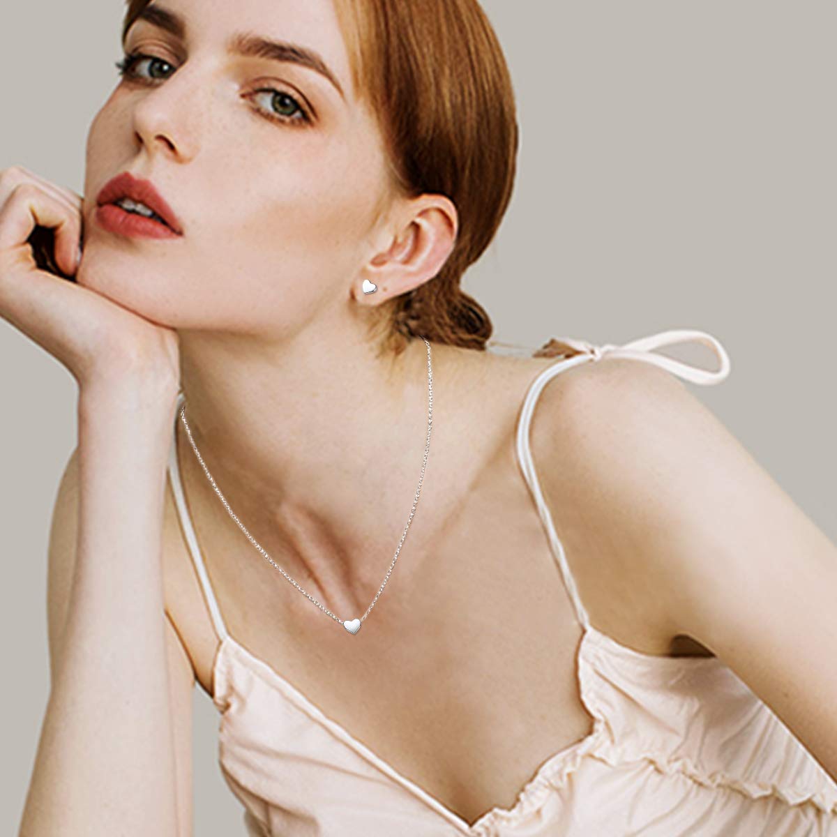 ChicSilver 925 Sterling Silver Heart Necklace and Stud Earrings Sets for Women Girls Jewelry Collection Birthday Gift - Silver