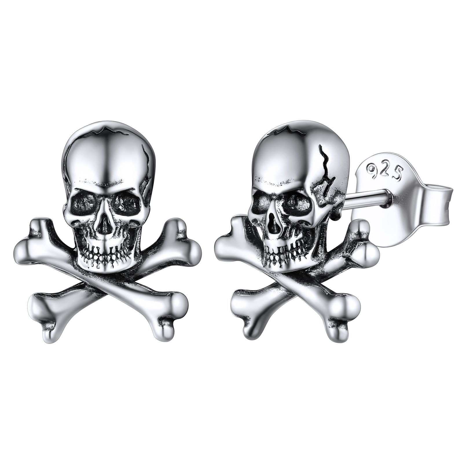 ChicSilver Skull Stud Earrings Sterling Silver Earrings Punk Gothic Criss Skeleton Head Earrings Jewelry for Halloween Party