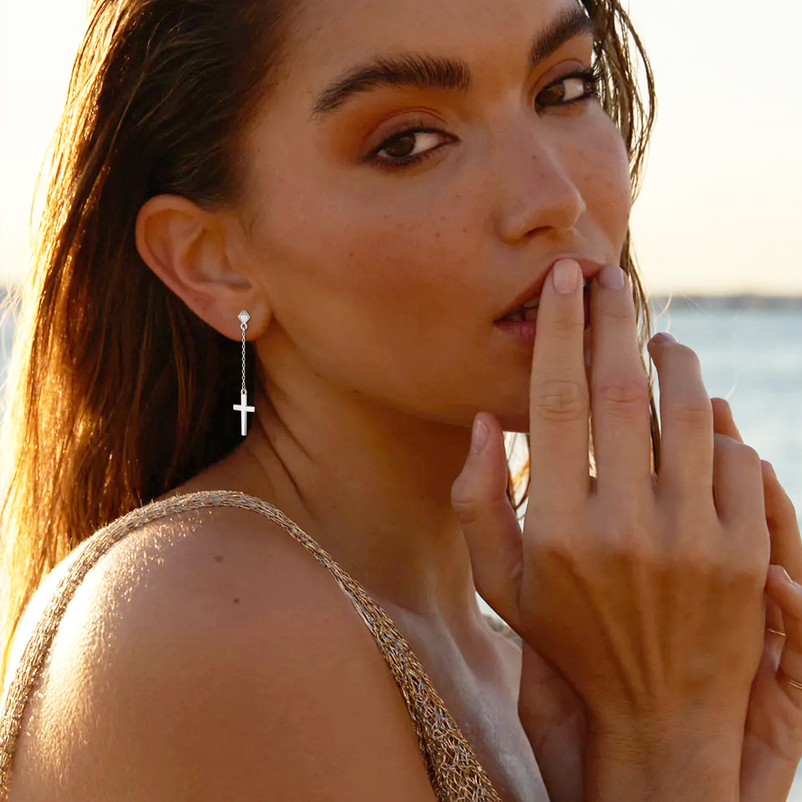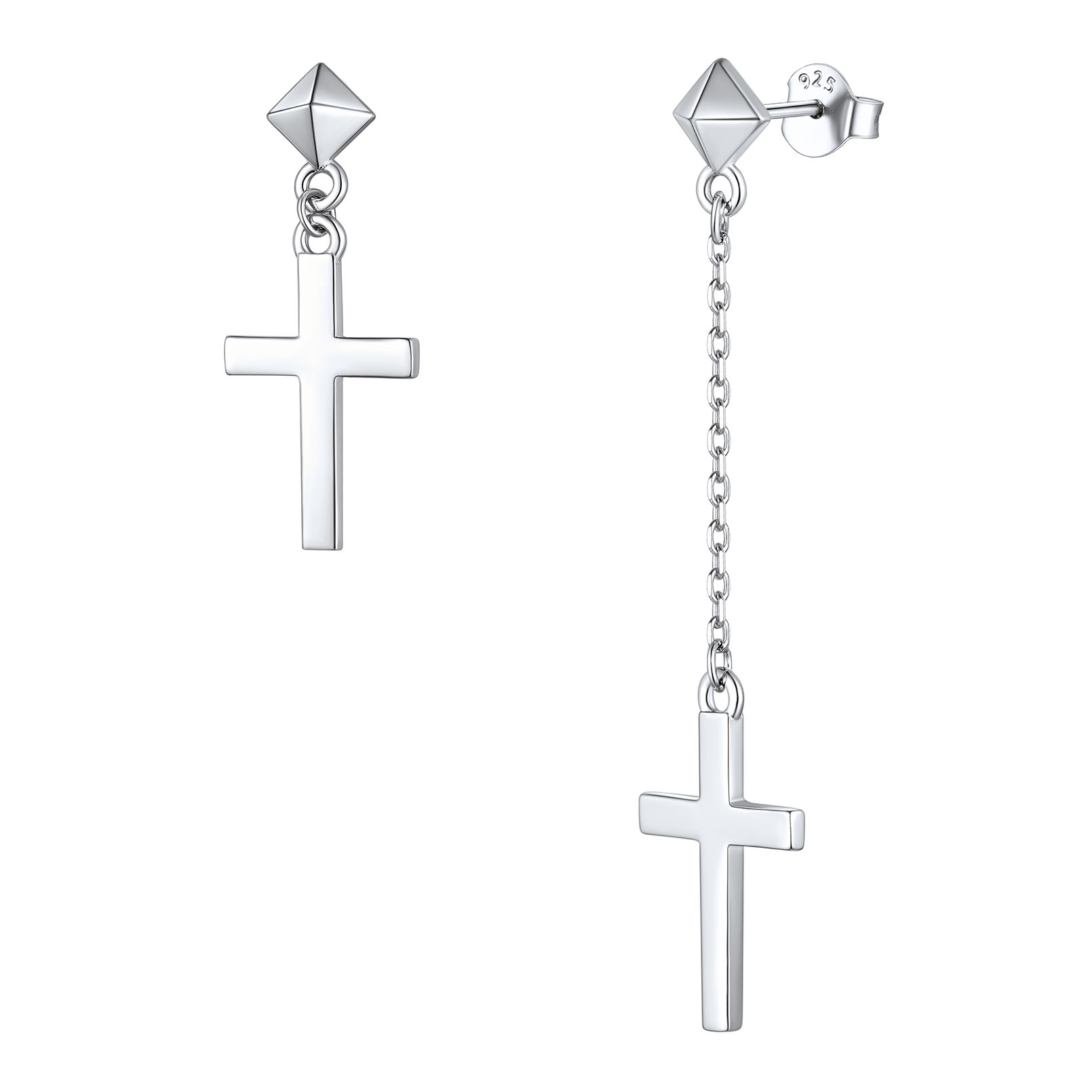 ChicSilver Cross Earrings Sterling Silver Dangle Earrings Hypoallergenic Asymmetry Drop Earrings Jewelry for Women Men Couple