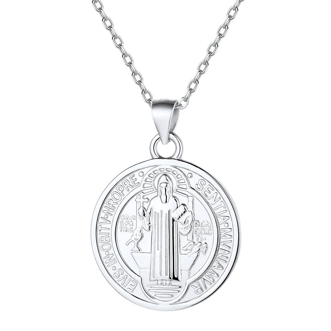 ChicSilver Saint Benedict Cross Necklace Round Coin Medallion Necklace 925 Sterling Silver
