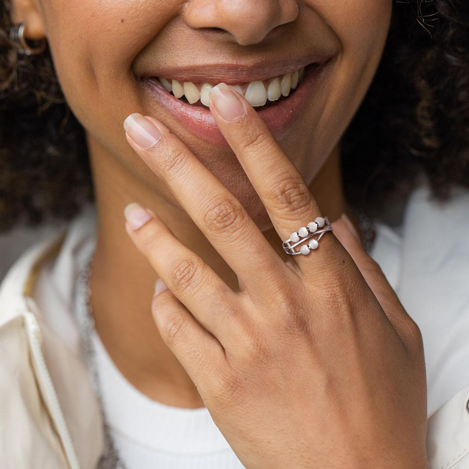 ChicSilver 925 Sterling Silver Fidget Ring for Women Men Anti Anxiety Rings Adjustable Open Spinner Band Ring with Sandblast Beads