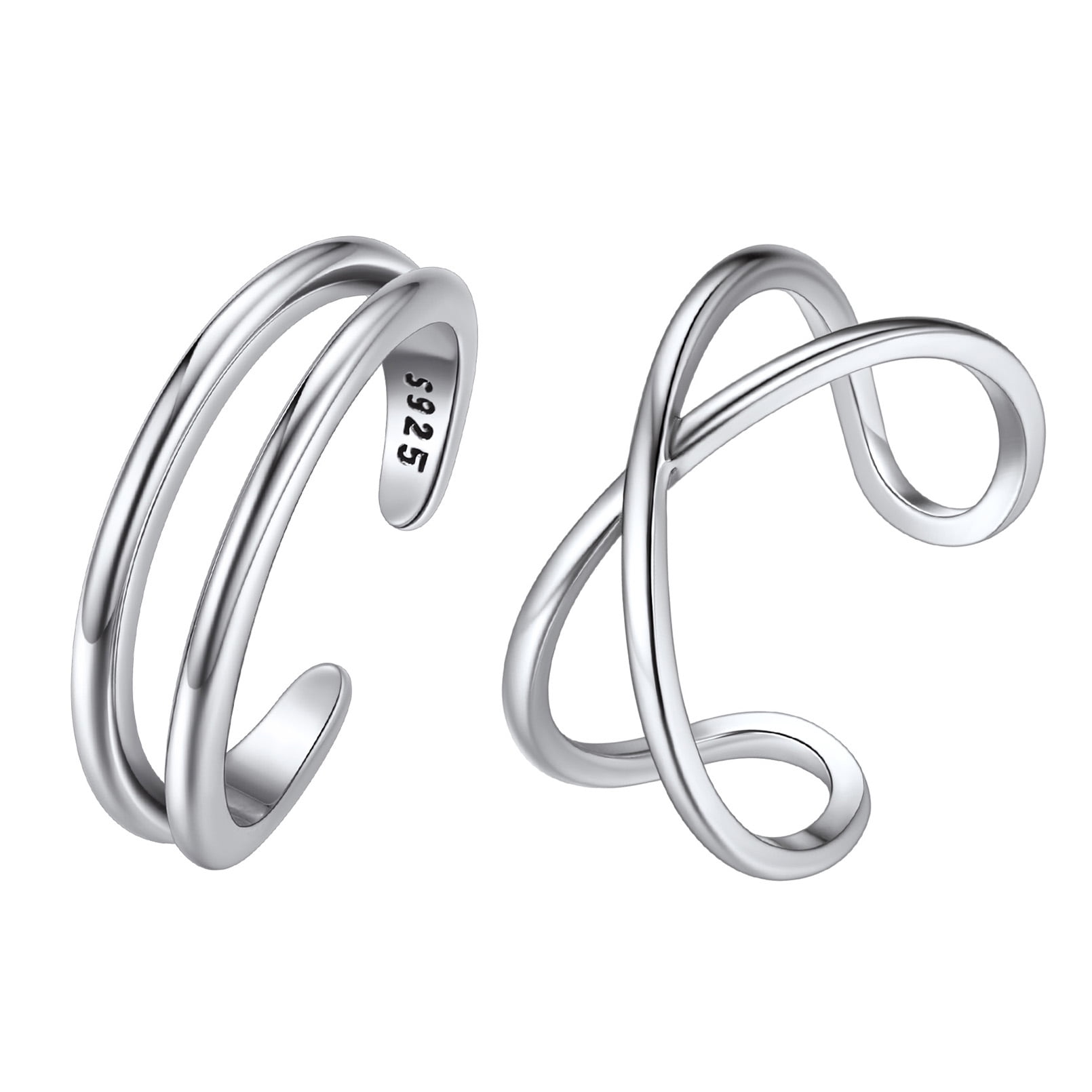 ChicSilver 2 Pcs 925 Sterling Silver Toe Rings Hypoallergenic Thin Line Open Cuff Toe Ring Set