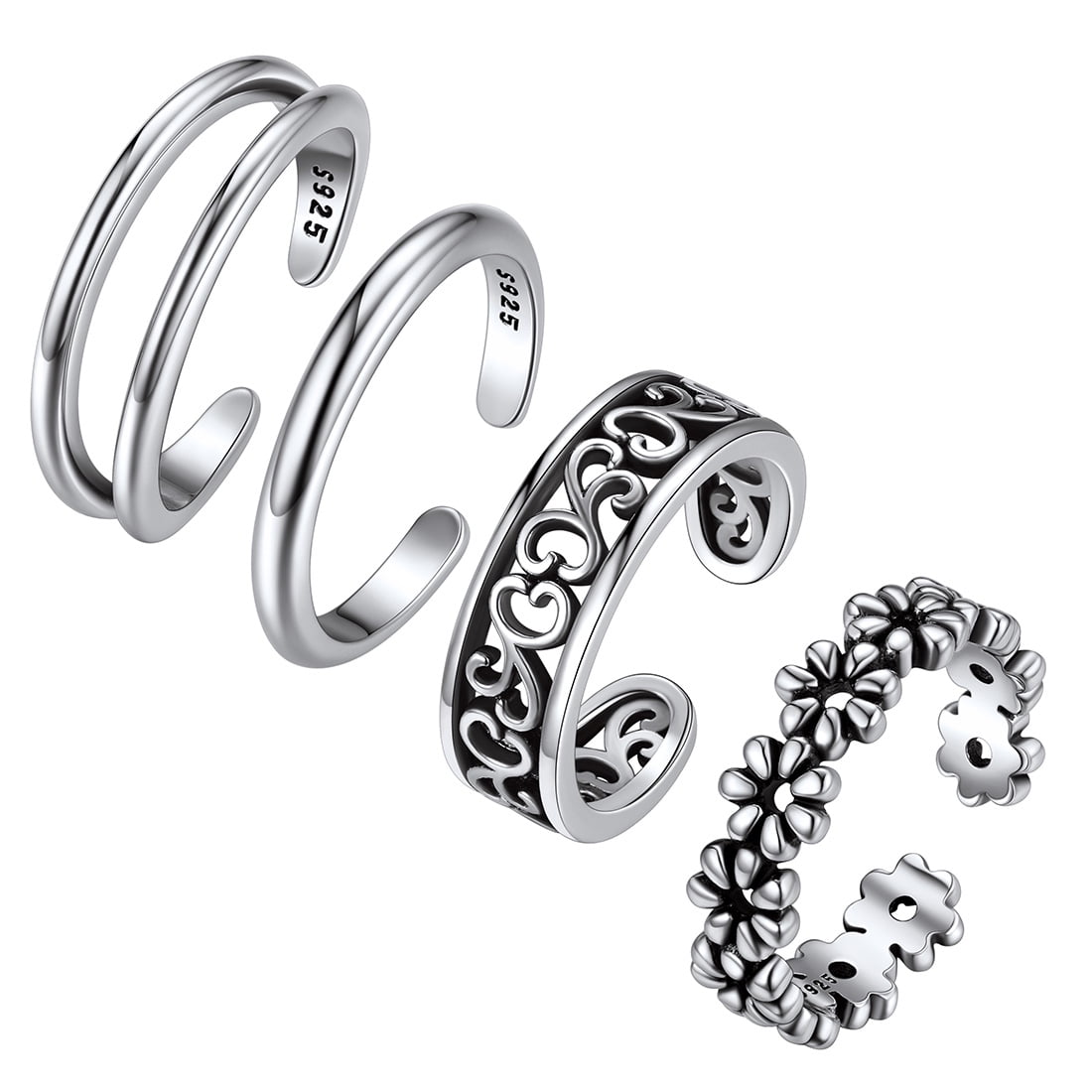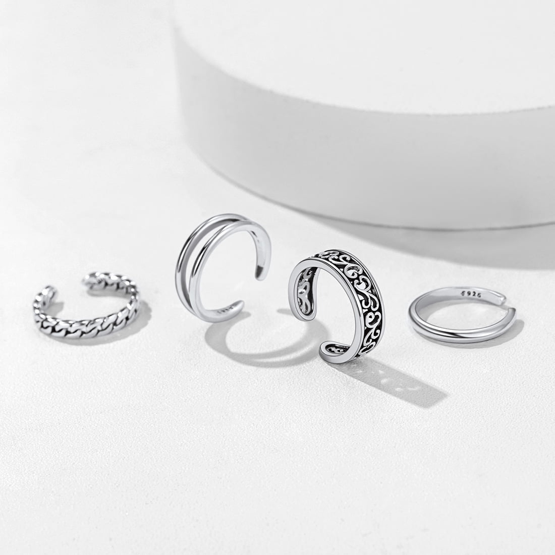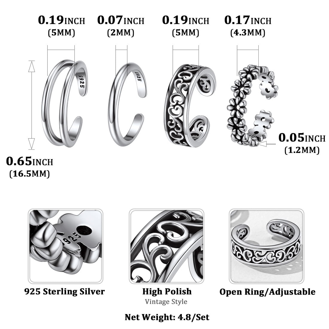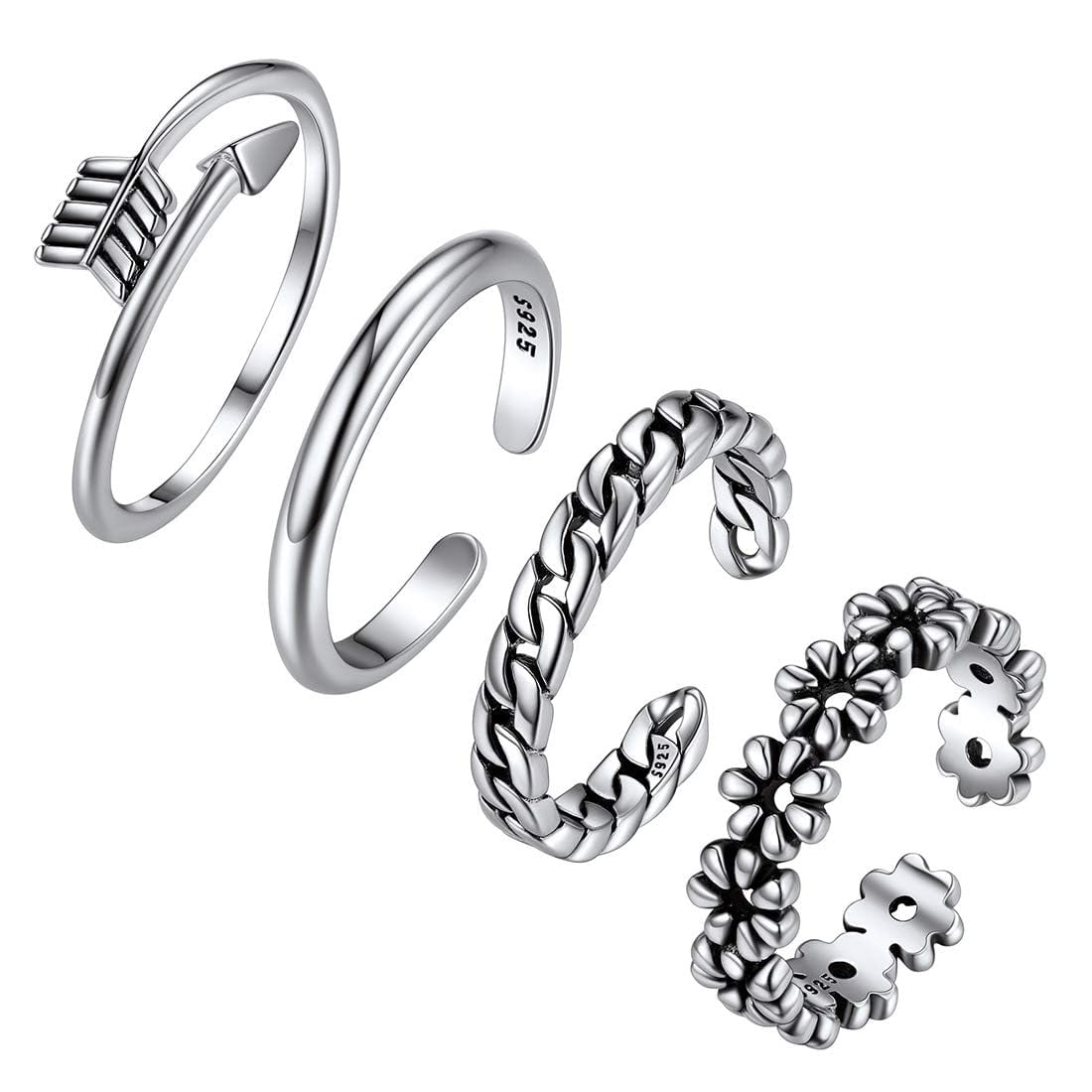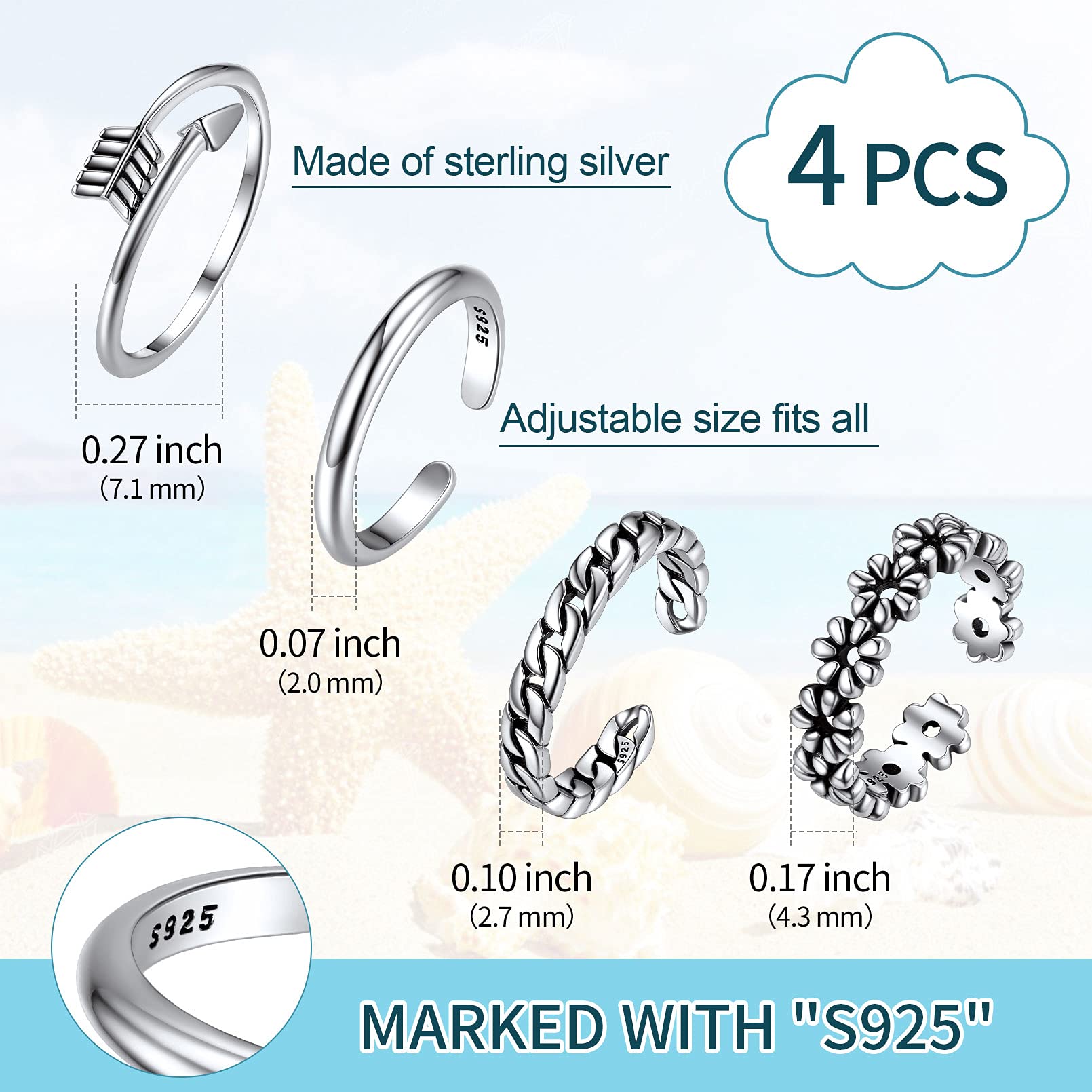 S925 Sterling Silver Toe Rings: 4 different pcs in a set, minimalist and stylish, various styles meet your different needs. These simple sterling silver open band rings can be used as ideal body jewelry toe rings, and are also popular and used as finger pinky rings. Accessorize your feet in a feminine more subtle style with a single ring or rings set. These rings are delicate and eye-catching and give you more versatility and options.