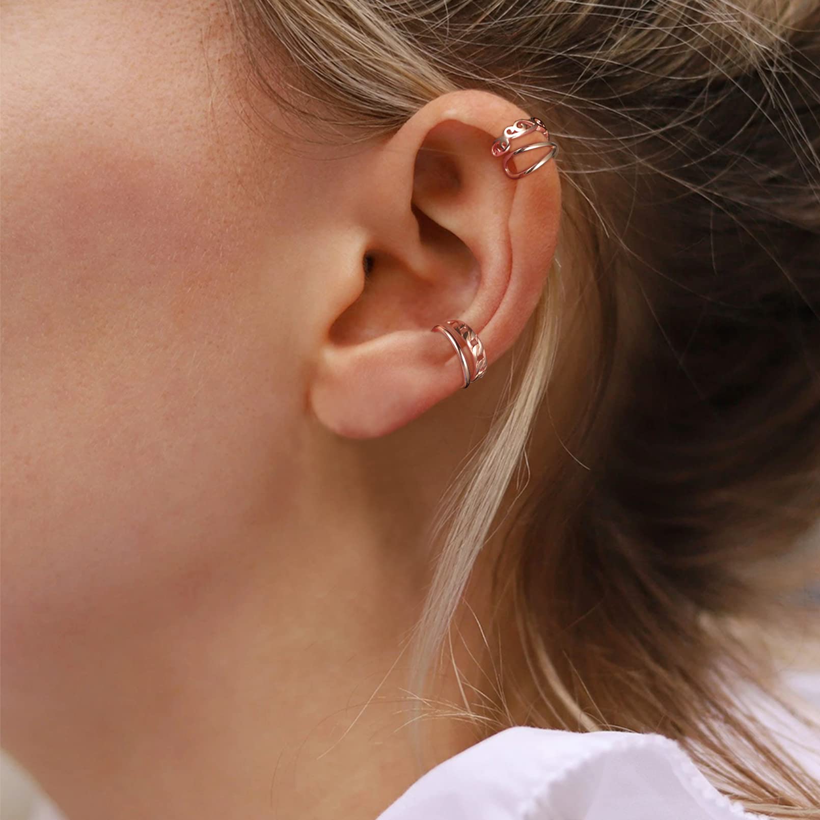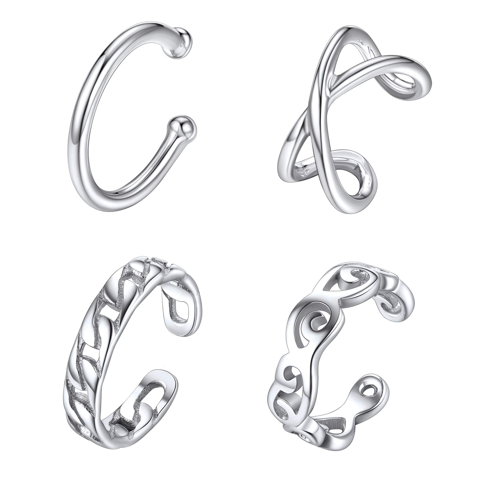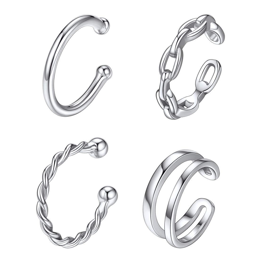 EXQUISITE EAR CUFFS SET - One order includes 4 pcs ear cuff with 4 different styles, perfect for ear cuff, tragus ring, lip ring, helix cartilage clip and fake nose ring. Great for daily casual wearing and special occasions as well.