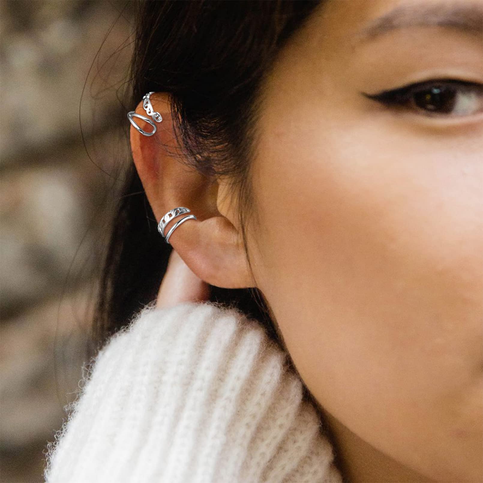 ADJUSTABLE CARTILAGE CUFF EARRINGS - Built of quality sterling silver, soft bendable wire, without worries of too loose to stay on or too tight to pinch ears, gently and step by step adjust the size while putting on or taking off.