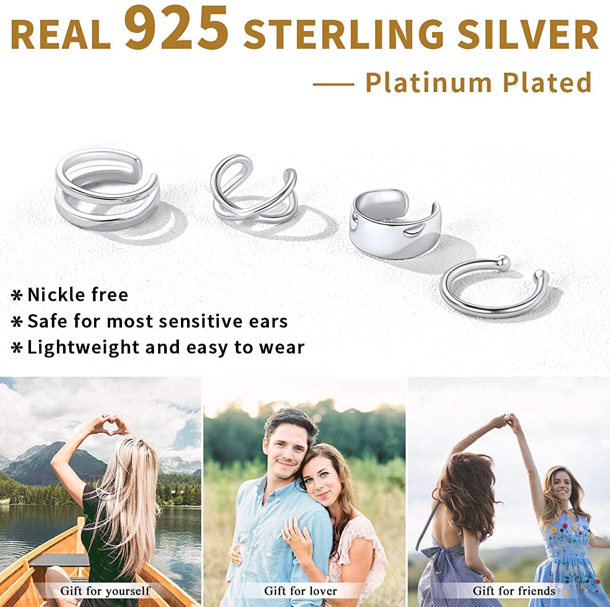 PURE 925 STERLING SILVER - These hypoallergenic 925 sterling silver earrings stamped with 'S925' hallmark, passed strict skin test grants allergy free, nickel-free, these fashion clip on earrings are safe for sensitive ears. Ideal sterling silver jewelry for girls, teens, women of all ages !