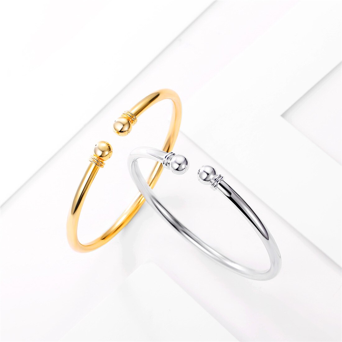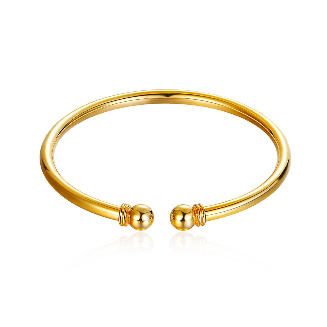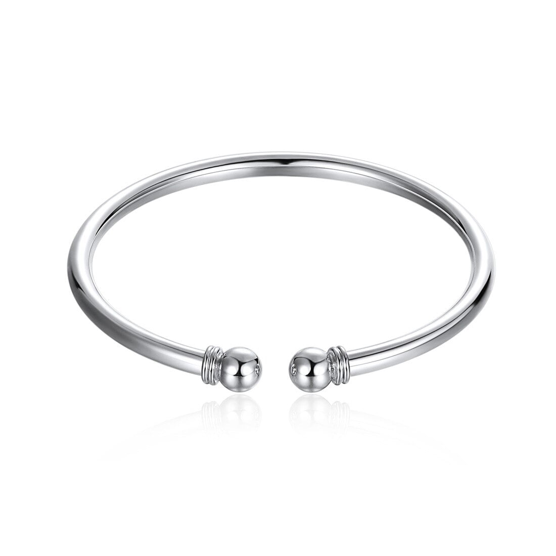 Simple traditional cuff bangle with 7mm ball ends and a smooth round body. This minimalist bangle is a must have. Beautiful worn alone or layered with other bracelets to suit your style.