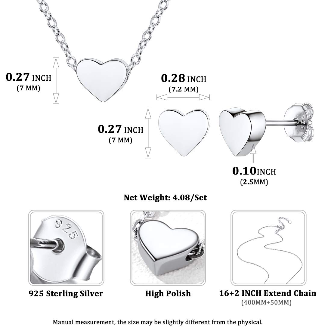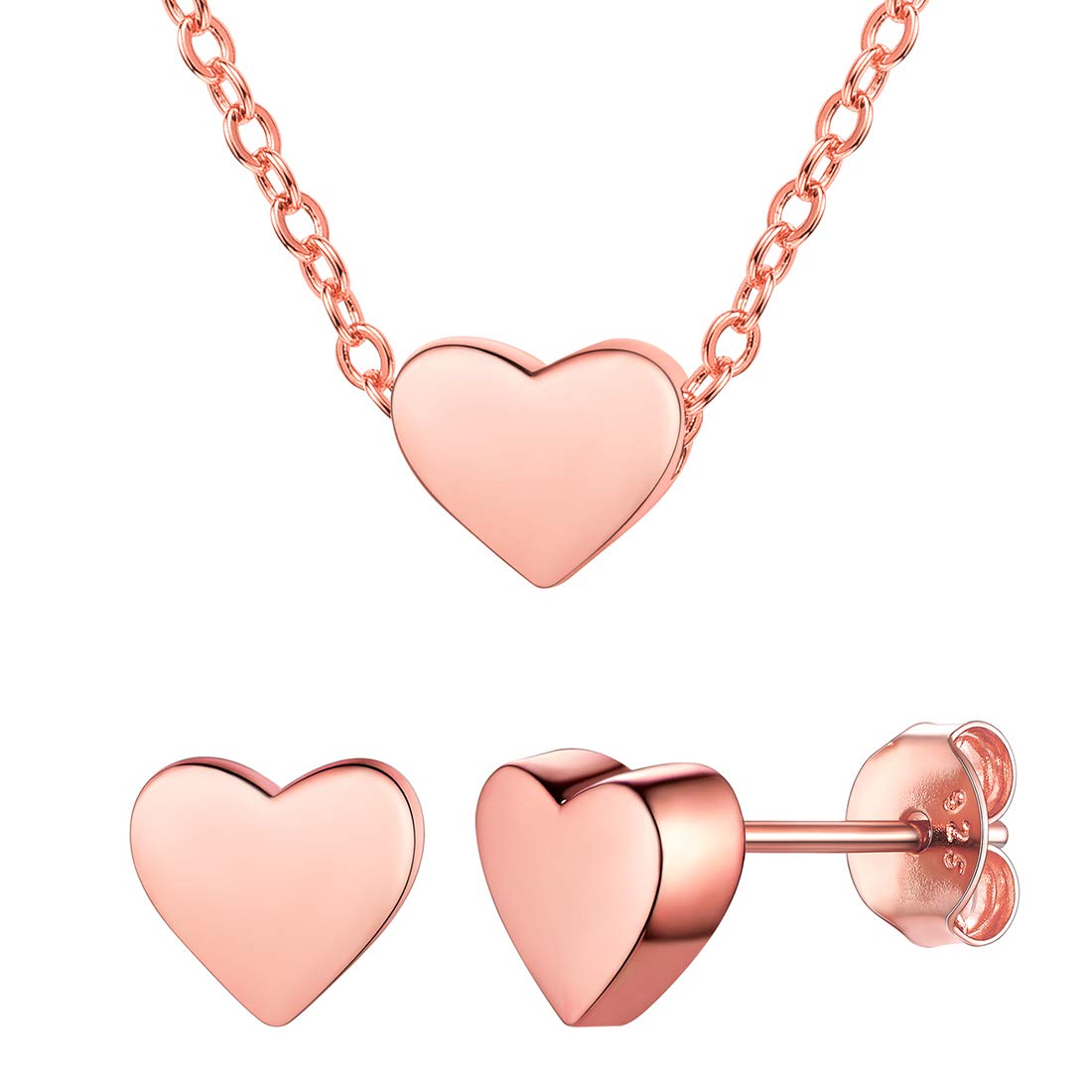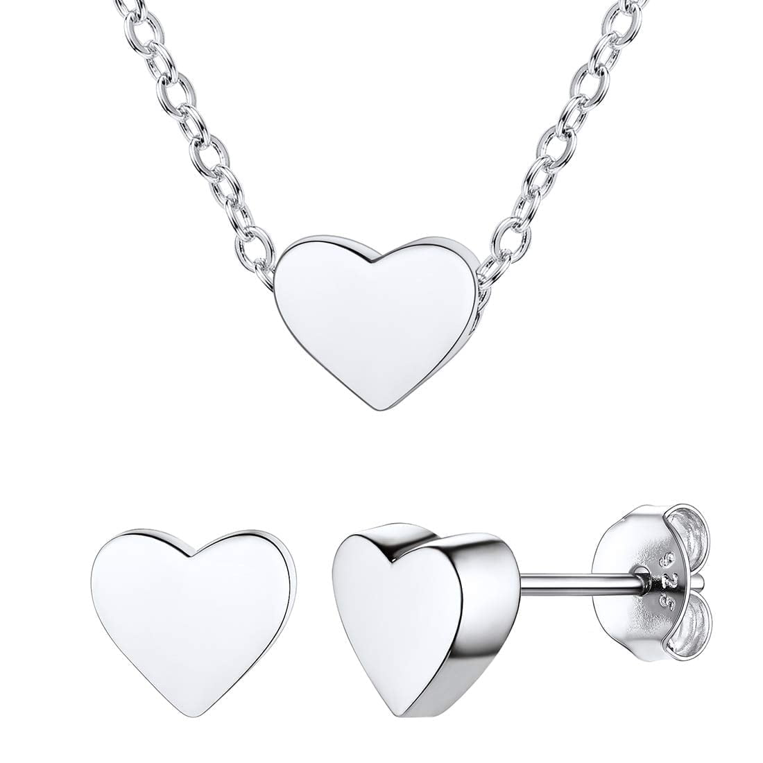 [DAINTY HEART COLLECTION] Earrings Size: 0.3????* 0.2mm(7mm*6mm); Pendant Size: 0.3'' * 0.2''(7mm*6mm); Chain Length: 16+2 Inches (400+50mm)/Resizable; Clasp Type: Lobster-Claw-Clasps. Colors: Silver, Gold, Rose Gold