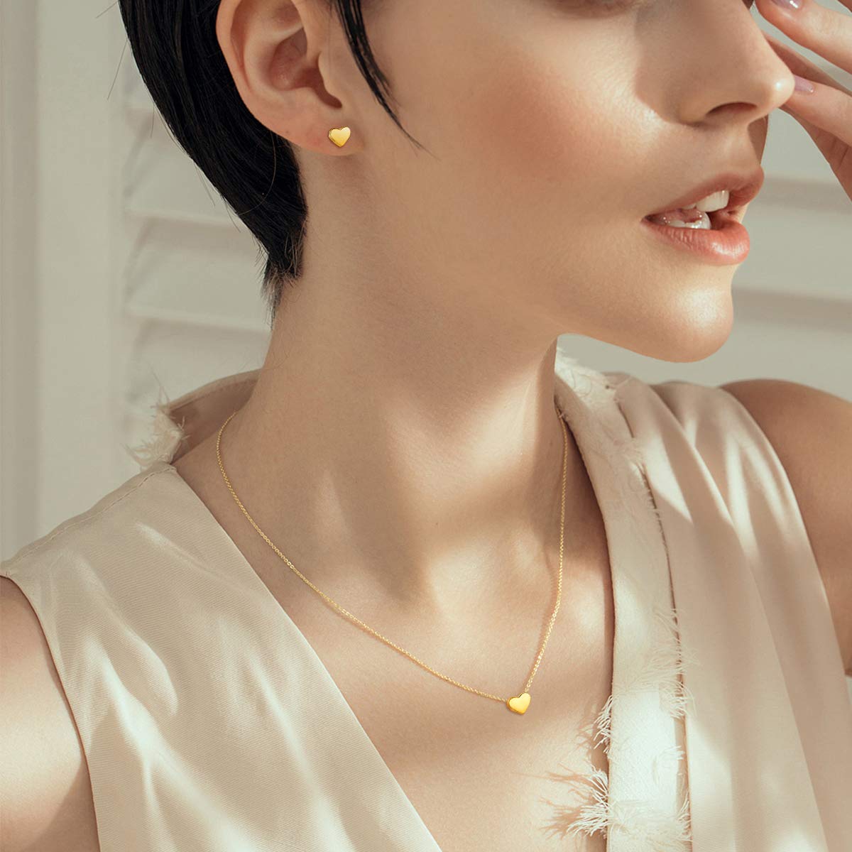 [UNIQUE JEWELRY SET] This simple dainty heart earrings necklace set for women, is your perfect daily jewelry. It can be worn every day for a casual look and paired with the matching necklace pendant to complete your outfit.