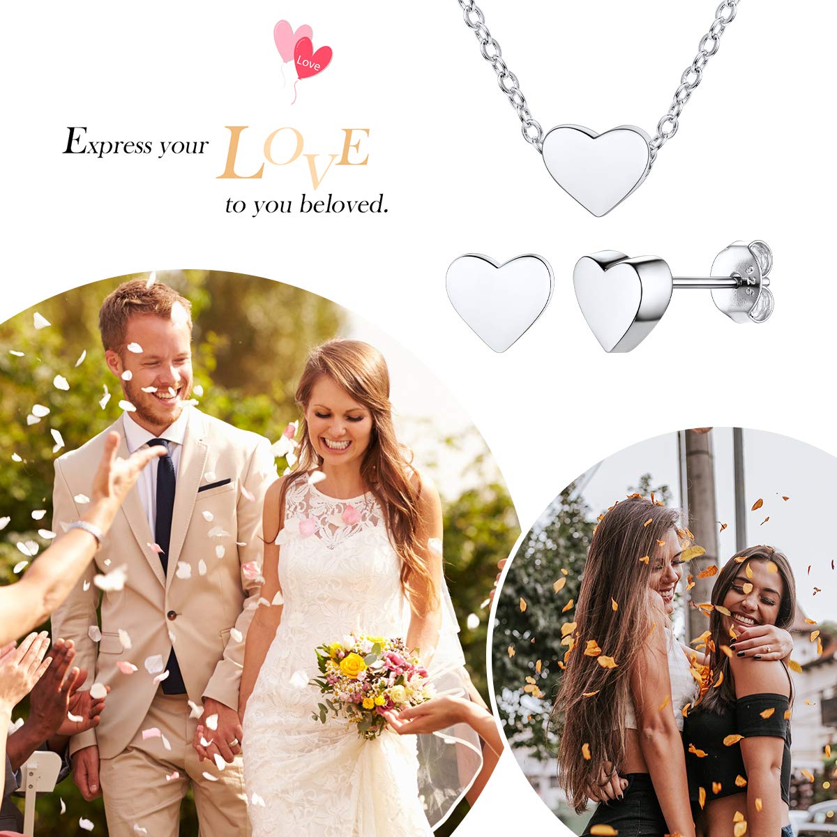 [IDEAL GIFTS FOR WOMEN GIRLS] 1 necklace + 1 pair of earrings, comes with a free beautiful gift box. A surprise gift show your heartfelt gratitude and love with heart jewelry. You also can use this as a unique present for Birthdays, Anniversaries, Valentine's Day, Mother's Day or any other festivals, very popular with women.