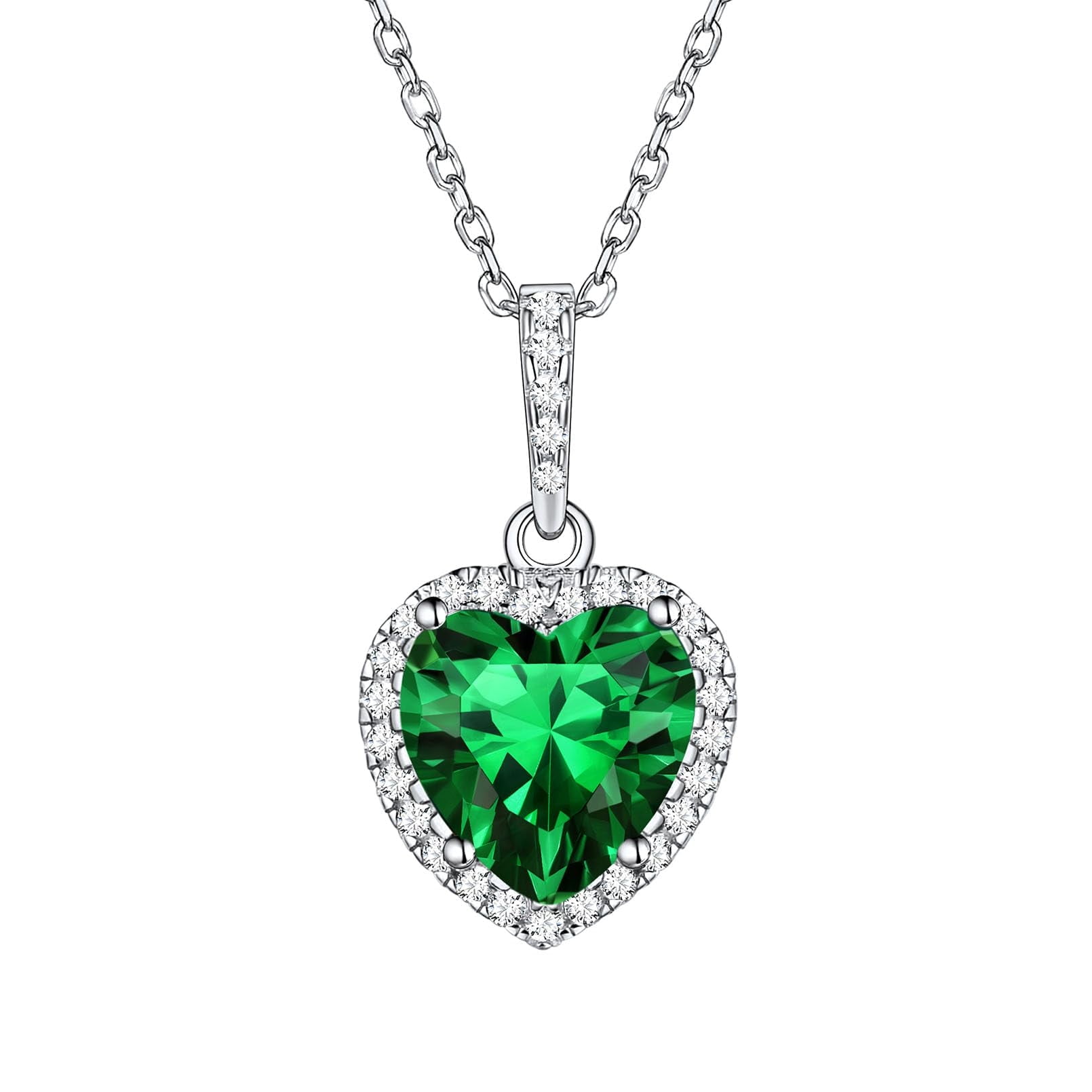 One big shiny heart-shaped Created May Birthstone, circled by small cz twinkling stones, fashionable and with a luxurious touch, you can wear this dainy cubic zirconia heart necklace daily or in special events and impress everyone with your unique style !