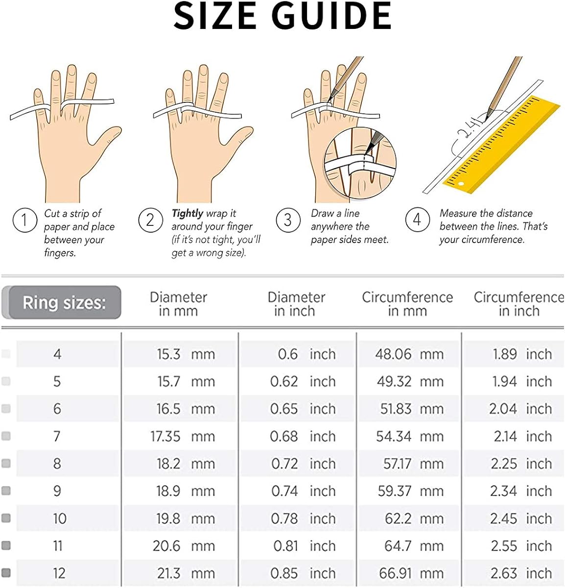 SIZING - Ring Width: 3mm. Please refer to our Ring Size Measurements Chart. We would like to suggest you have your finger sized at a local jewelry store for the most accurate sizing options.