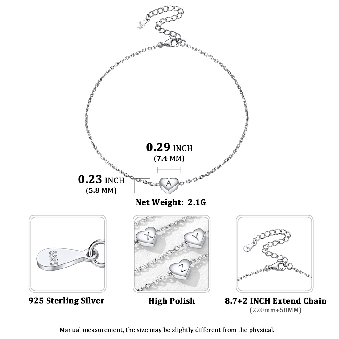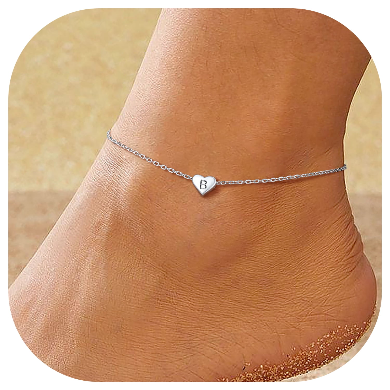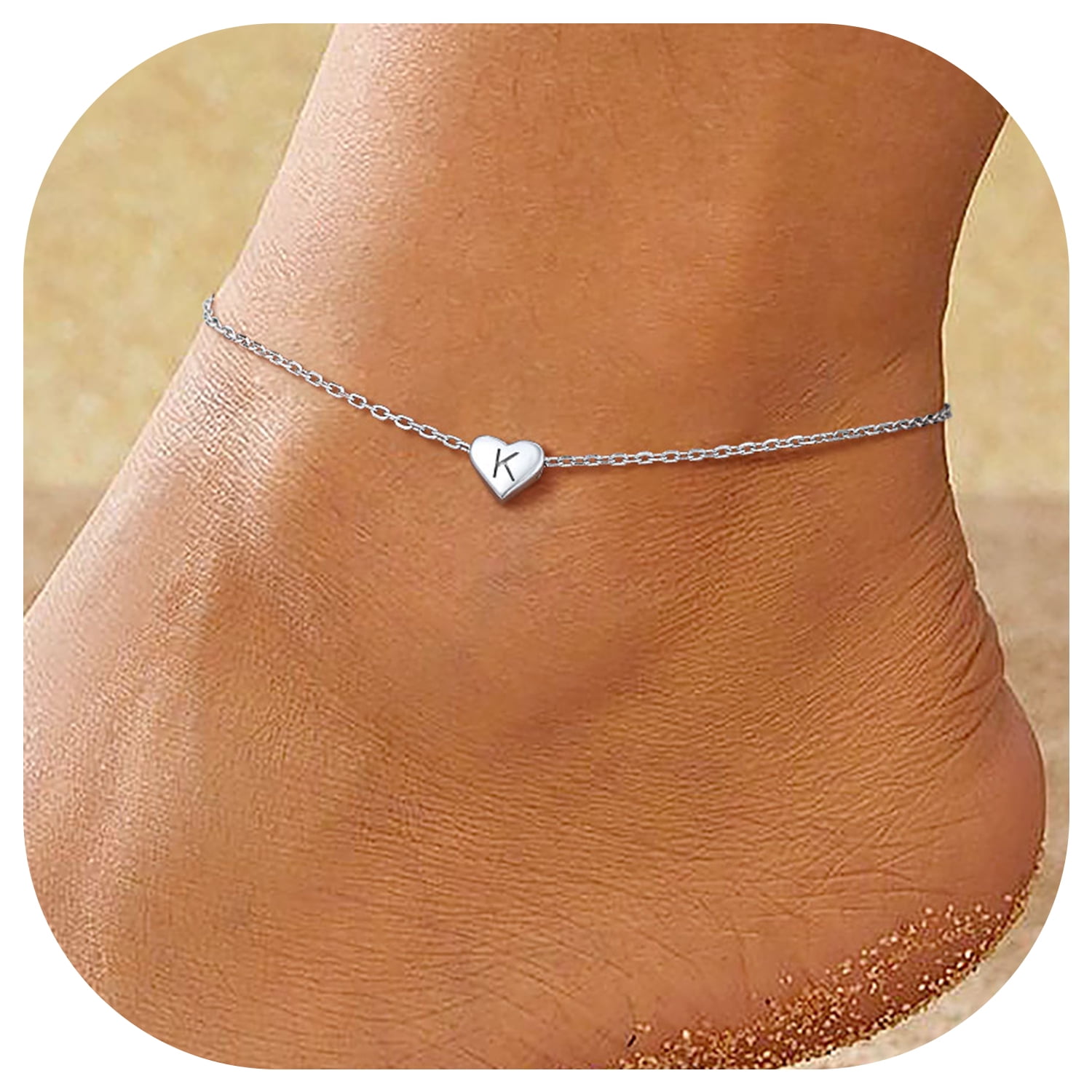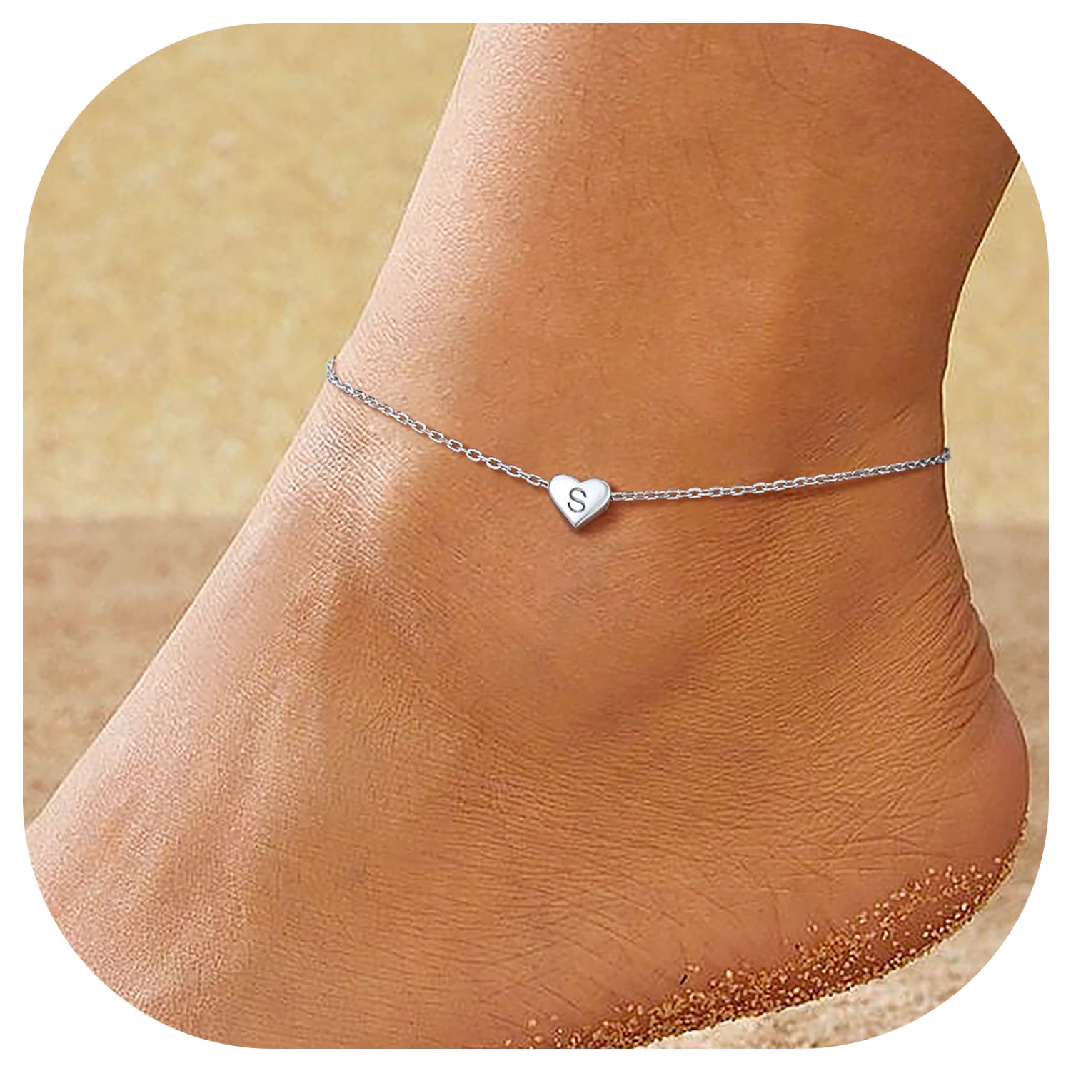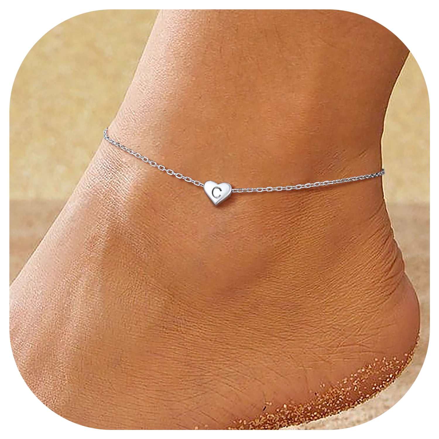 CHICSILVER INITIAL ANKLET BRACELET - ChicSilver Anklet with initial is a good gift to express that you are always there for her. This fashion dainty heart anklet is your perfect summer jewelry. Minimalist anklet - Perfect for layering with more anklets, sparkles in the sun, perfect fit for your Ankle. This silver ankle bracelet will really bring you a lot of attention and praise!