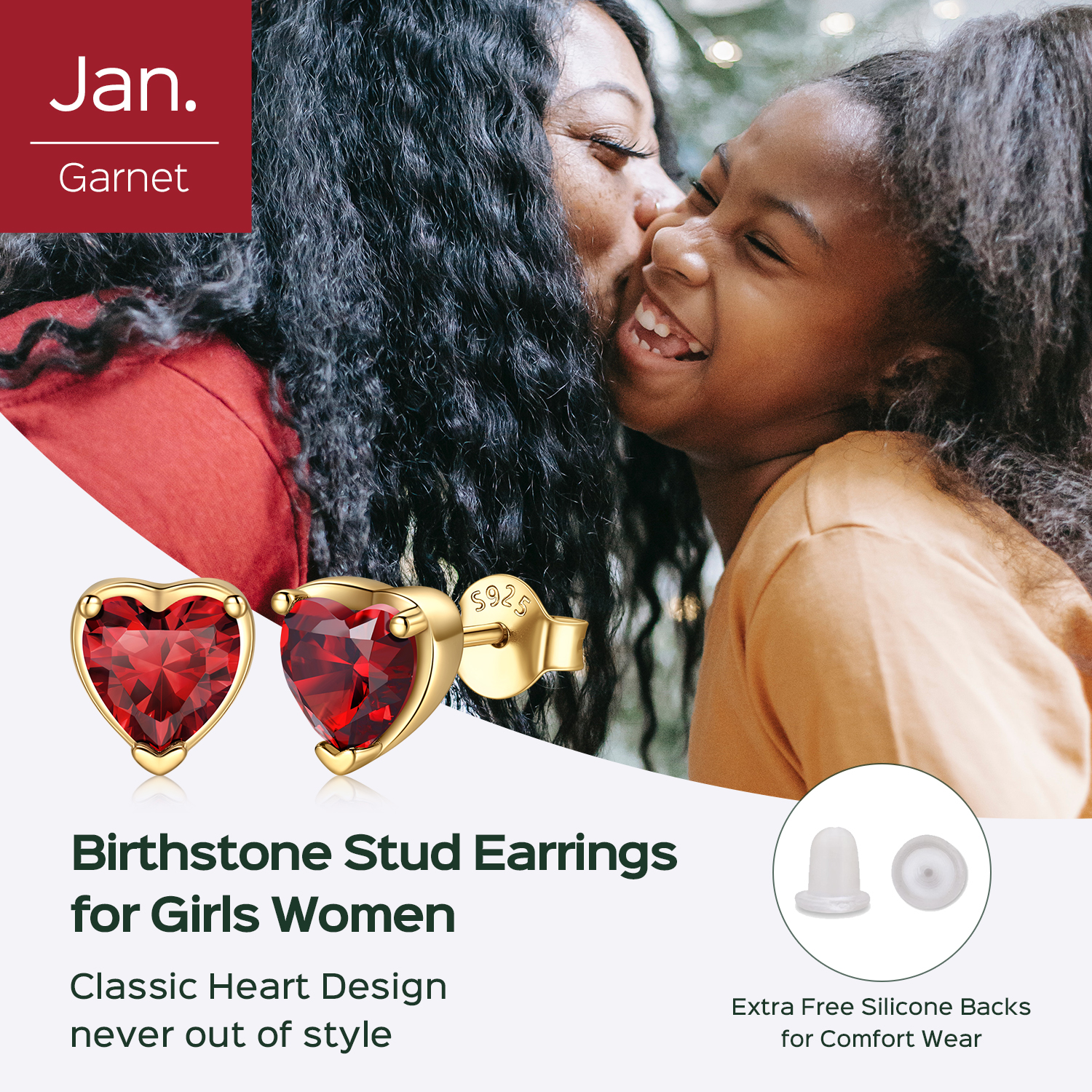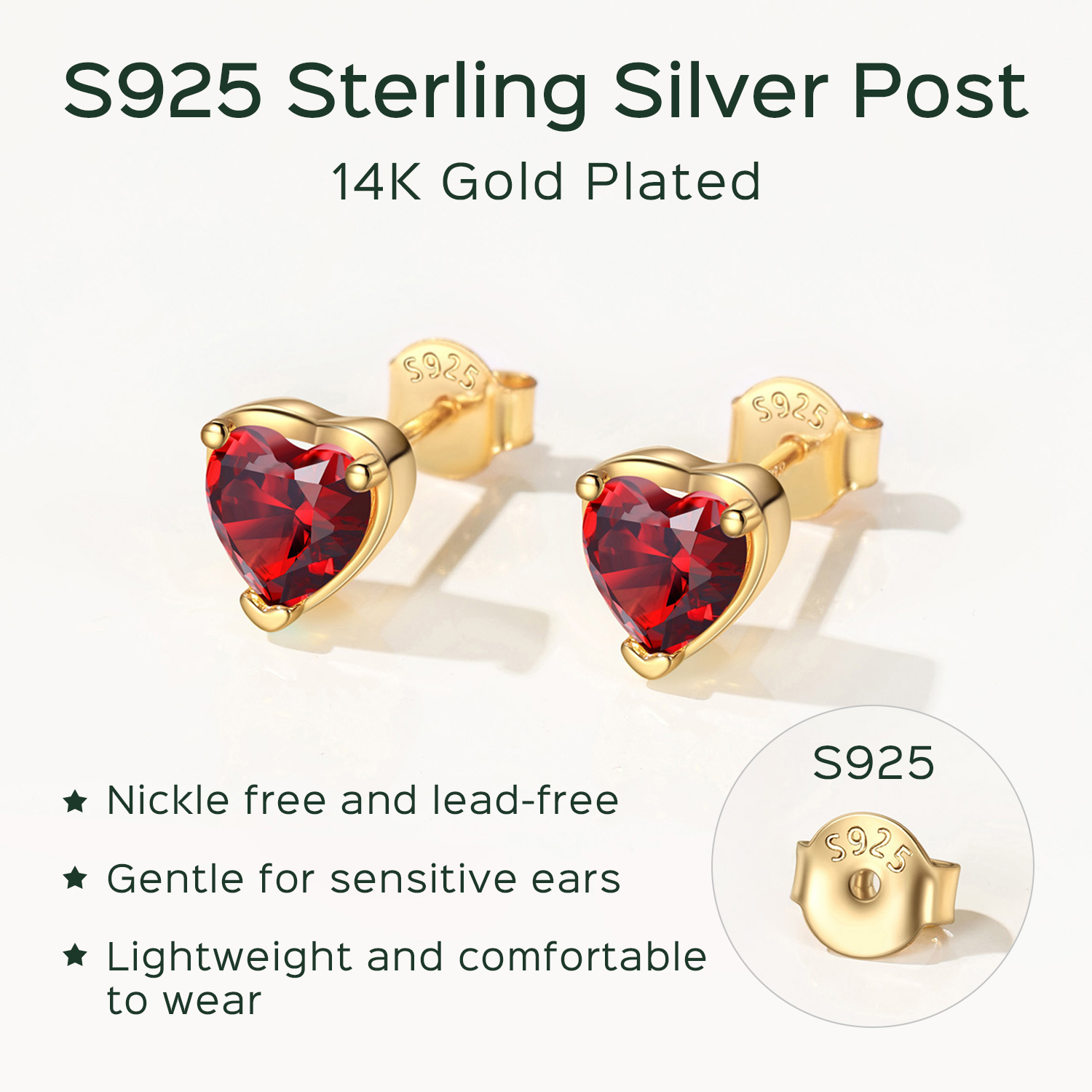 Featuring a sparkling simulated birthstone in your choice of heart shape, these stud earrings for women radiate the brilliance of genuine diamonds. Each facet catches the light beautifully, creating an irresistible shimmer that elevates any outfit. Each month has its own represented birthstone, each birthstone stud earrings gift has a special meaning, the best wishes are placed on the gift for the person you love.