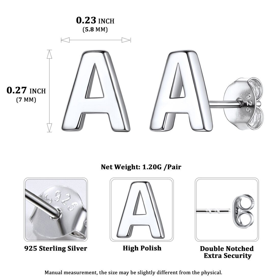CLASSIC FASHION EARRING -- This small letter earrings look very elegant with sweet and special design, beautiful for everyday wear or special occasion. If you have a "A" on your first name or last name, or it represents a special someone in your life, just buy this meaningful monogram stud earrings.