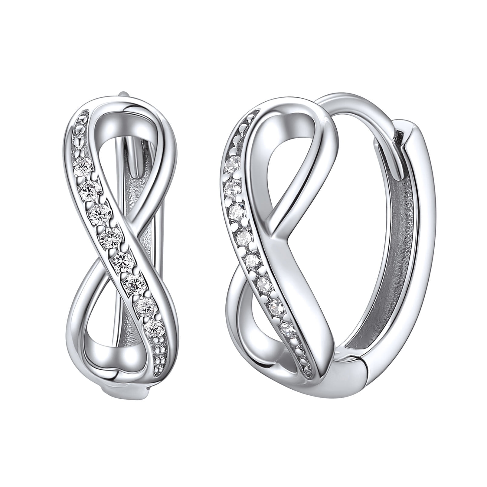 INFINITY SMALL HOOP EARRINGS - Size: 13.6*10mm/0.53*0.39 inch. Net Weight: 1.8 grams. Silver small infinity hoop earrings are suitable for almost all of sensitive ears.