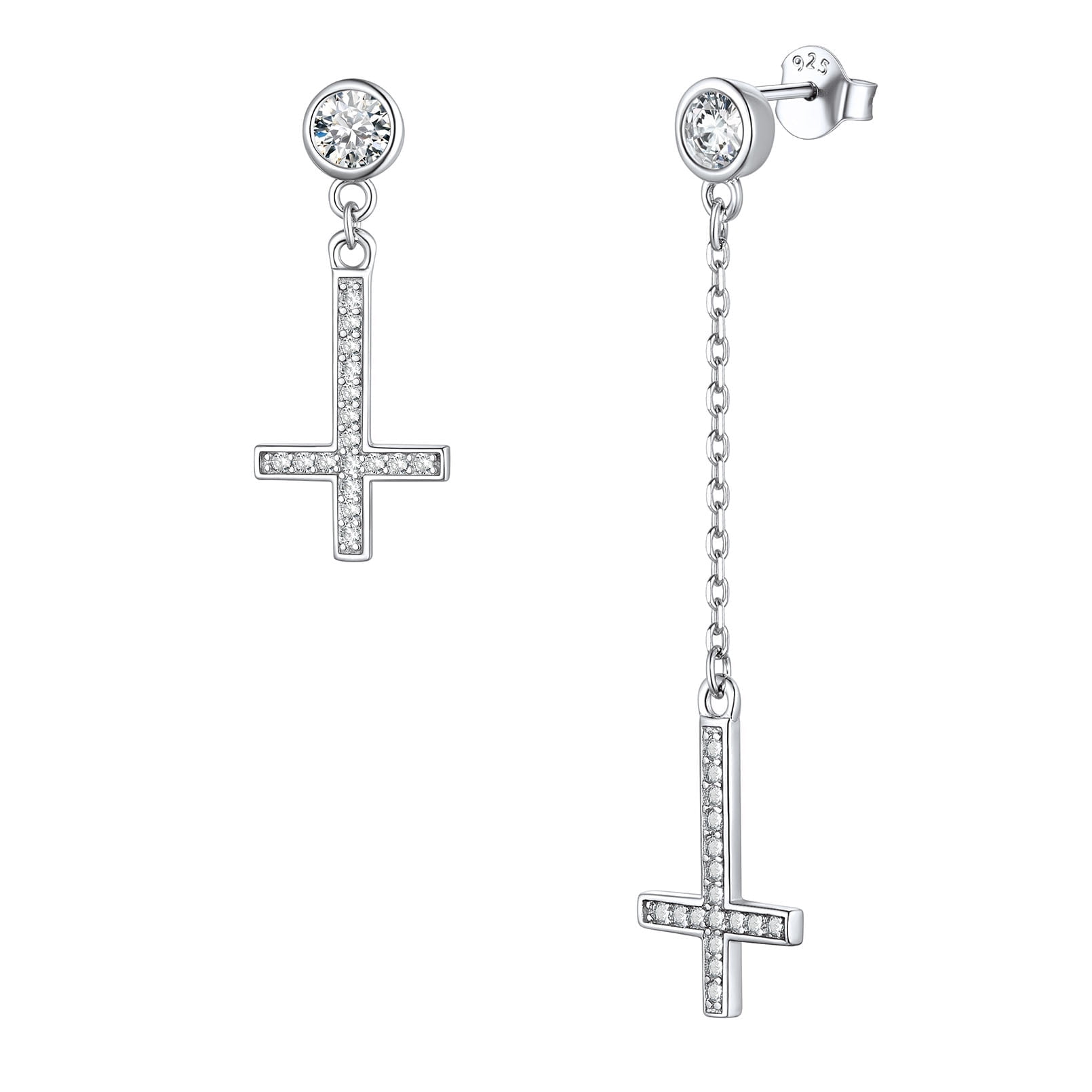 CHICSILVER INVERTED CROSS EARRINGS - Unique asymmetrical cross design, never go out of fashion. Exquisite, minimalist and lightweight, perfect for everyday wear.