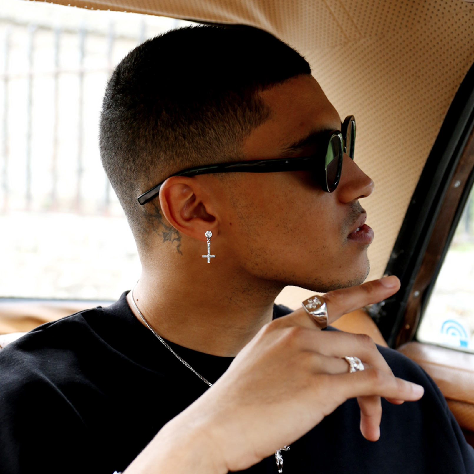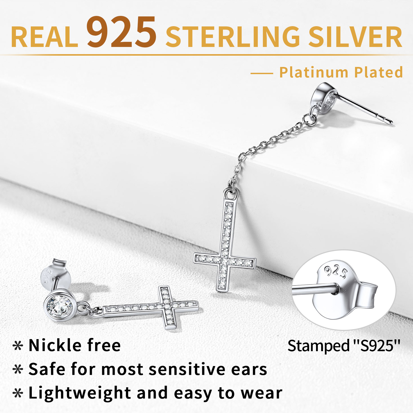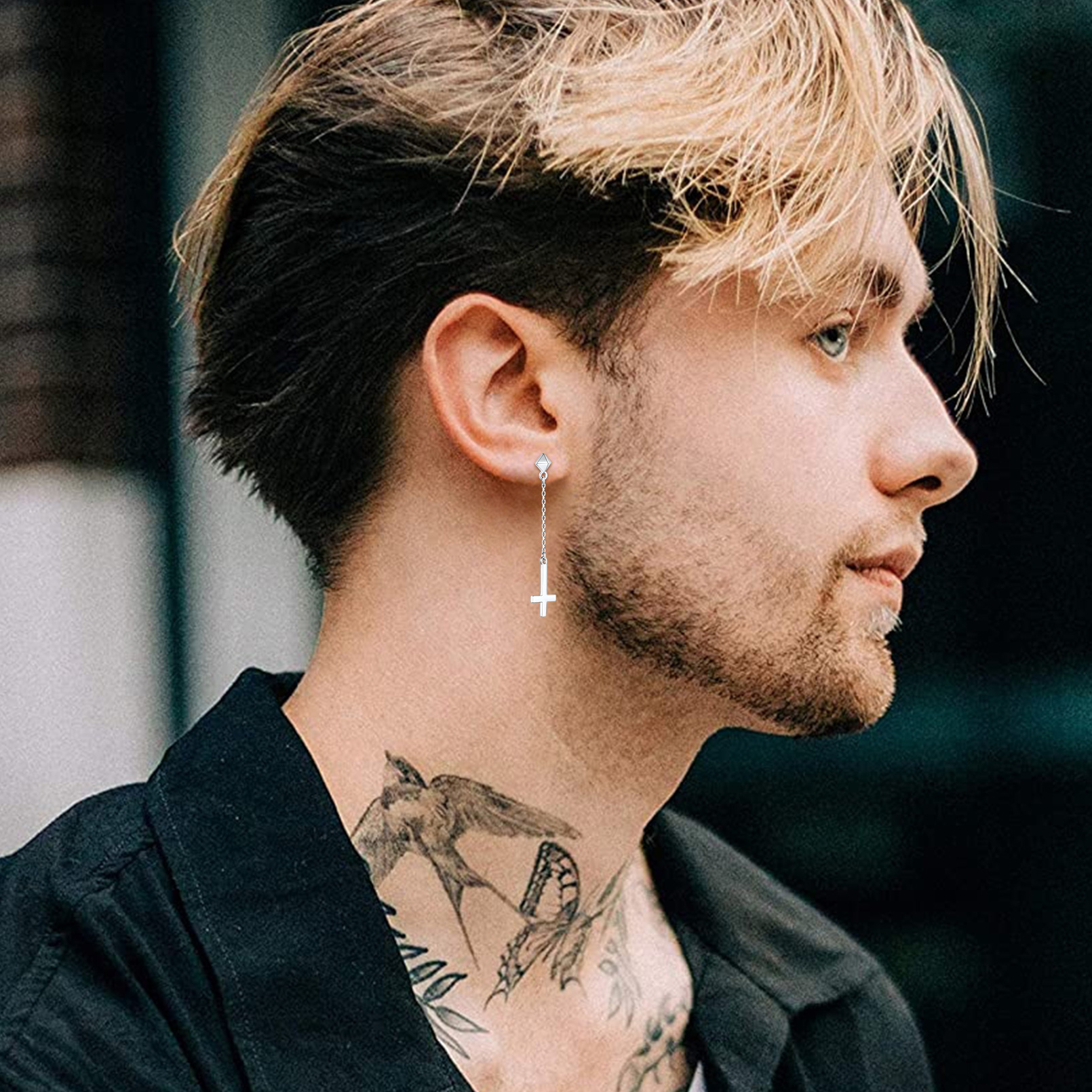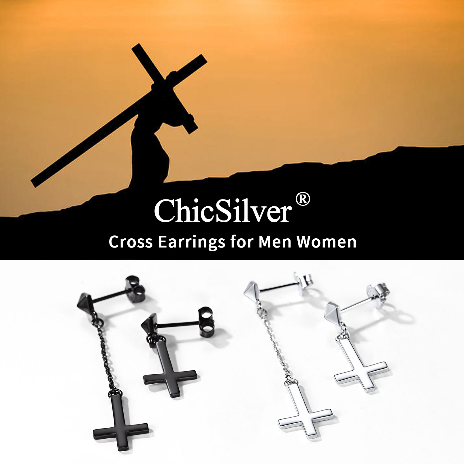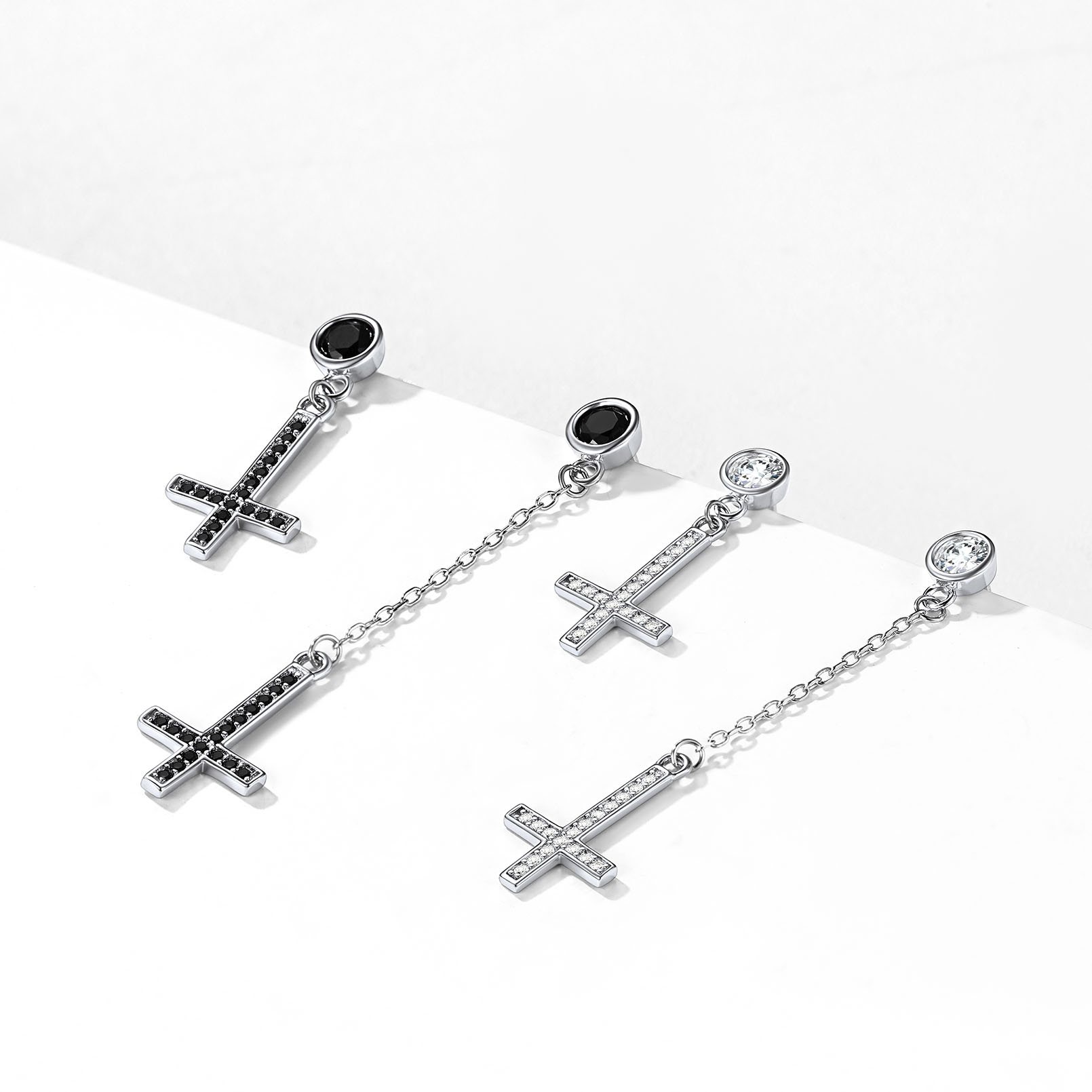 UPSIDE DOWN CROSS EARRINGS FOR COUPLE - Short Earring Drop Size: 0.94" x 0.39", Long Earring Drop Size: 1.78" x 0.39", good size for most of people. These inverted cross dangle earrings can highlight your appearance, catch everyone's eyes in the crowd.