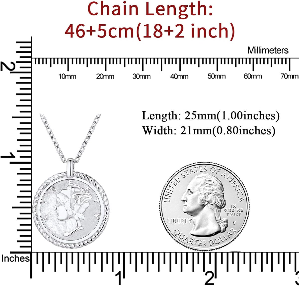 Coin Pendant Design:The silver pendant symbol of this coin necklace is a vintage design that is simple delicate and stylish. Displays a combination of strength and beauty. Classic and timeless, this pendant necklace will be a real highlight for every man/woman. He/She will never go out of fashion. This necklace is the exquisite choice as a gift for a surprise.