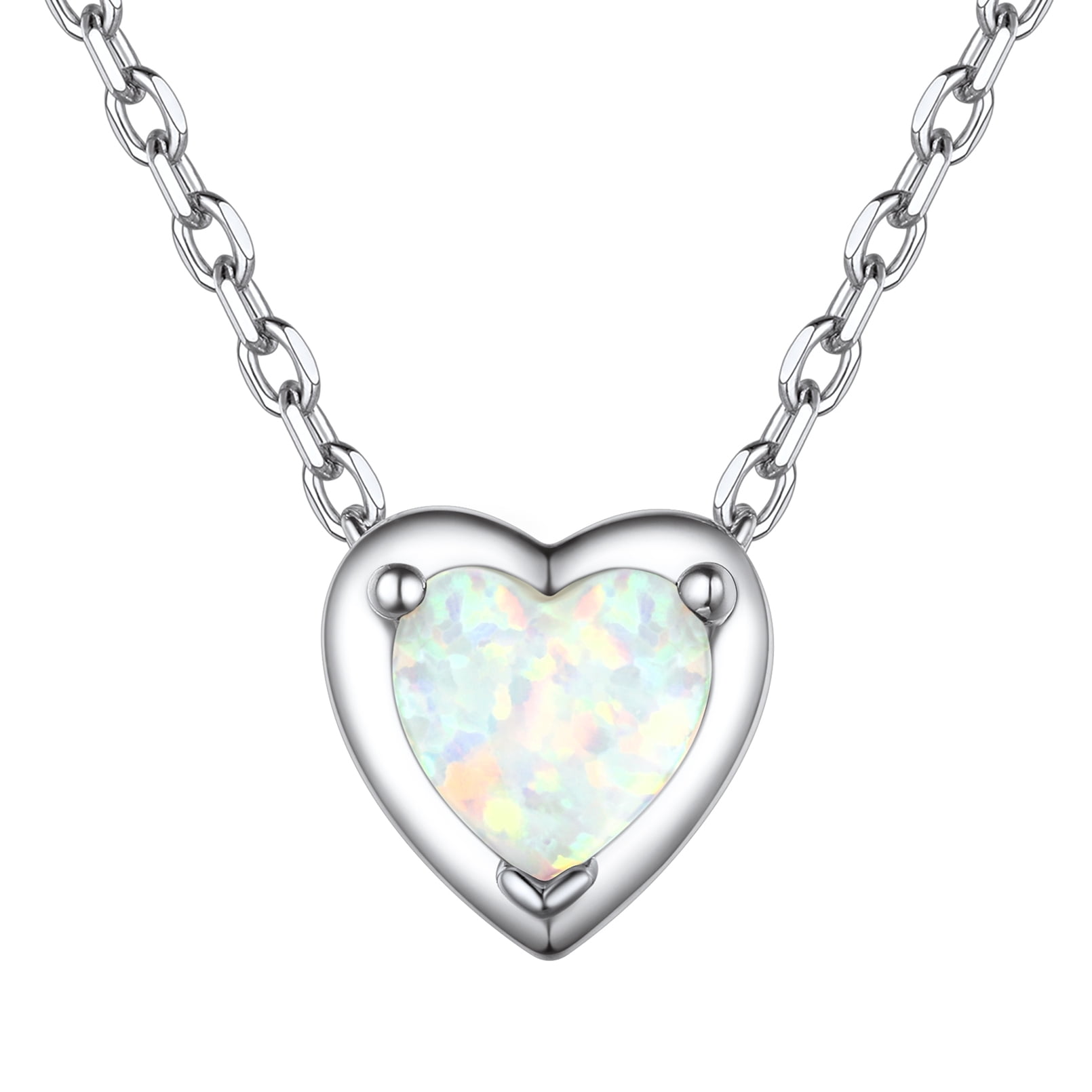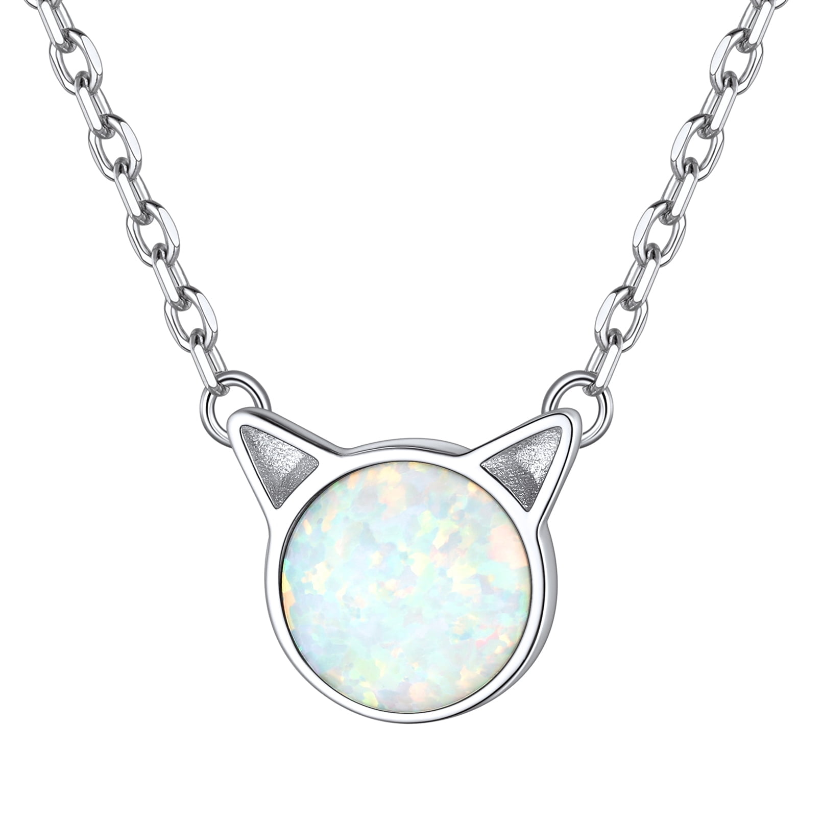 HYPOALLERGENIC OPAL SILVER NECKLACE- Size: 0.33"/8.6mm W x 0.34"/8.7mm H; Chain Length: 16 inches +2 inches extension/Resizable which make sure it will fit perfectly on anyone; Clasp Type: Lobster-Claw-Clasps, easy to put on; Necklace Weight: 3g.