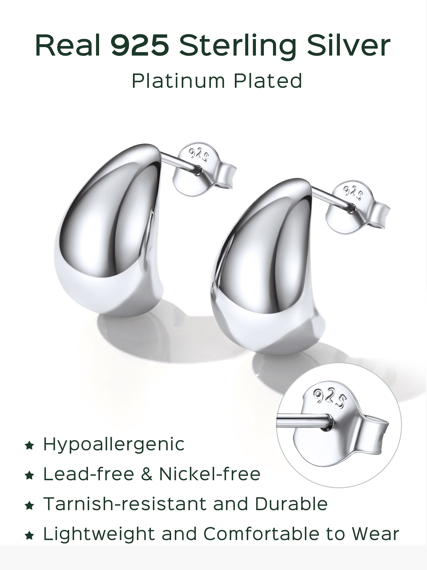 Trendy Teardrop Earrings -- Made of hypoallergenic 925 sterling silver, nickel free and lead free. ChicSilver women open hoop earrings have passed strict testing, safe for sensitive skin and comfortable to wear. Ideal jewelry for girls, teens, women of all ages!