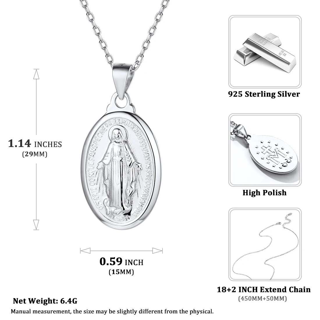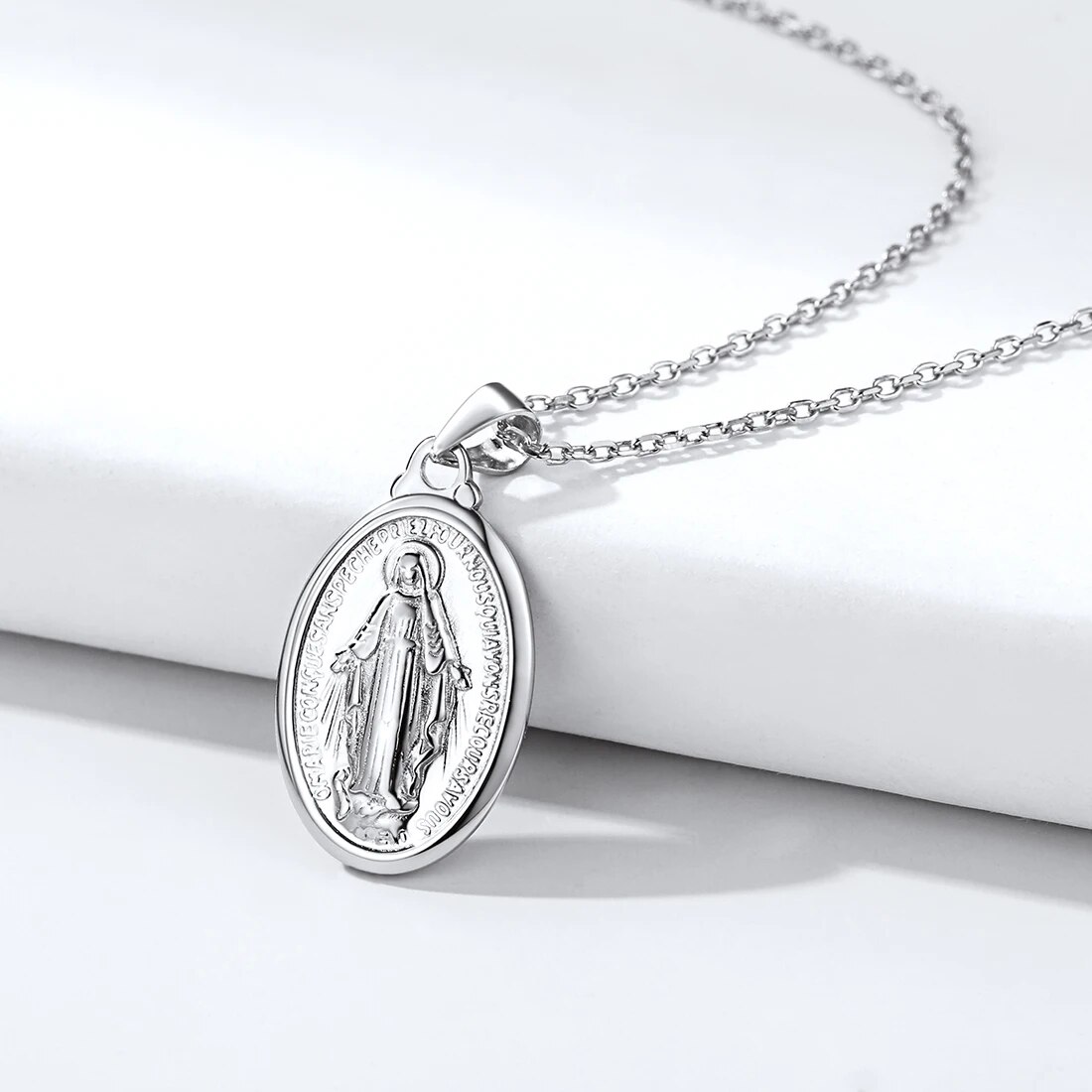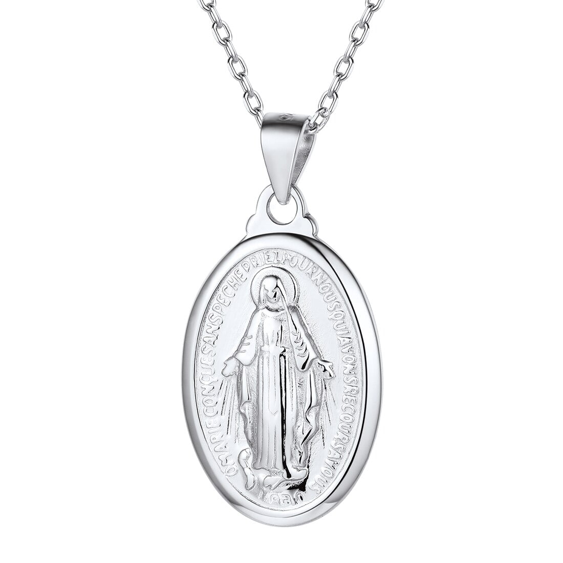 ChicSilver Virgin Mary Necklace 925 Sterling Silver Miraculous Medal Oval Pendant Catholic Religious Christian Jewelry