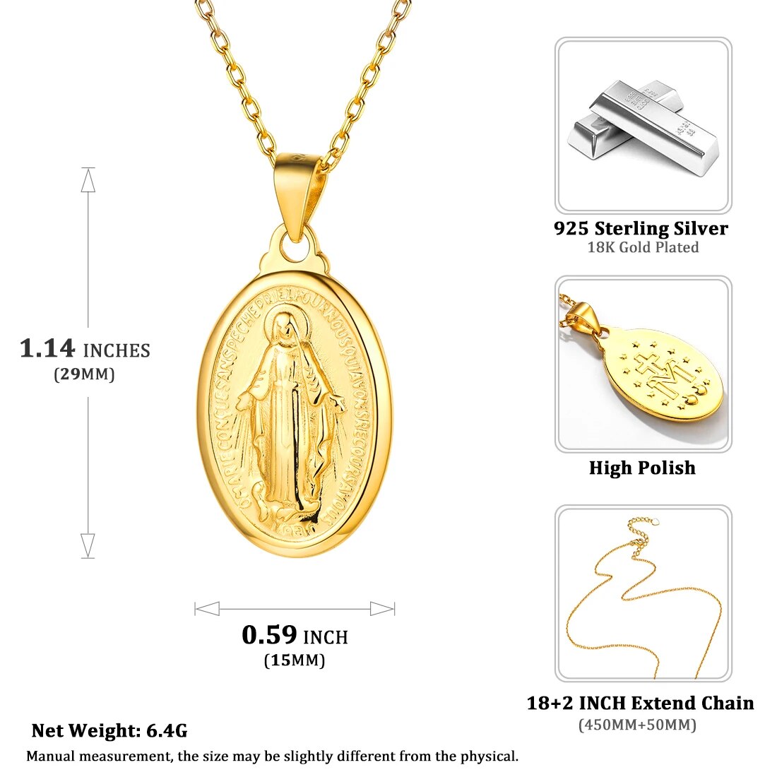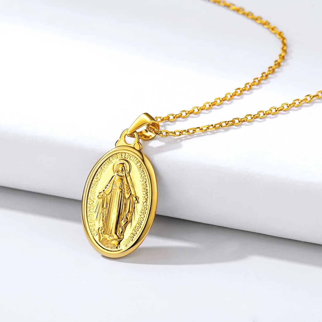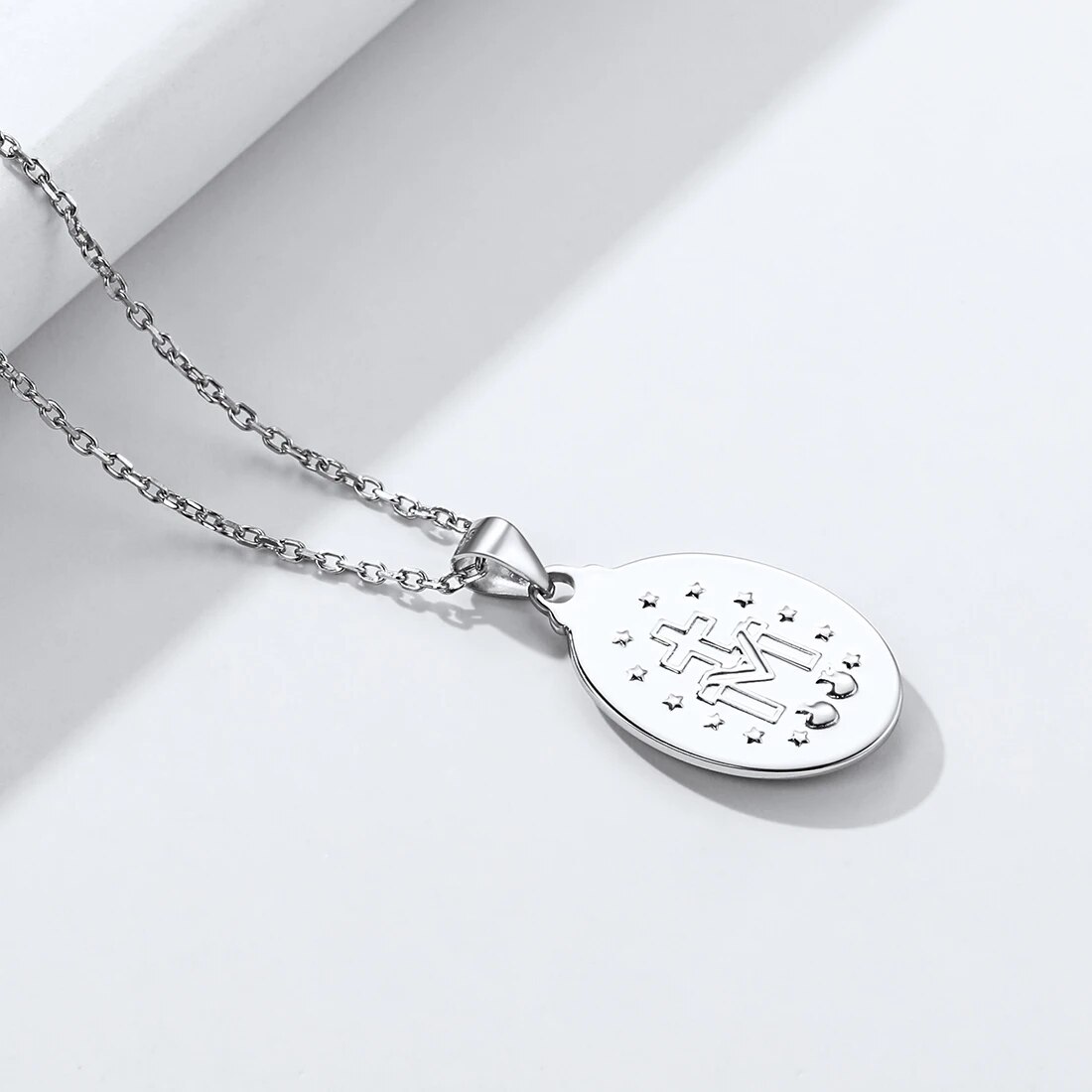 ChicSilver Virgin Mary Necklace 925 Sterling Silver Miraculous Medal Oval Pendant Catholic Religious Christian Jewelry